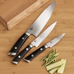 Как правило, в каждом доме должно быть три ножа длиной до 30, 40 и 48 см., которые разделяют на два вида: специальные и универсальные. Универсальные поварские кухонные ножи предназначены для выполнения основной части работ любого повара, а специальные для специфической чистки или резки, например: чистки яблок или же нарезки мясного филе. Такой нож обязательно должен иметь широкое лезвие, которое выполнено методом ковки и имеет покрытие молибдена, что защищает нож от ржавления, к тому же широкое лезвие позволит правильно выбрать угол резки, и защитит ваши пальцы рук от различных ударов о стол, в процессе быстрой резки. Также, на что следует обратить внимание, так это на качество заточки, поскольку большинство людей часто режутся не сильно острыми, а напротив достаточно тупыми ножами. Лезвие качественного ножа, обязательно должно приходить через всю длину ручки, а не заканчиваться через пару сантиметров погрузившись в нее. А вот ручка данного поварского инструмента должна быть достаточно удобной, помимо этого если на ней имеются заклепки, то они ни в коем случае не должны царапать ладонь. Стоит помнить, что качественный нож обязательно должен быть сбалансирован, для проверки чего его нужно серединой положить на палец. Если он ровно лежит на пальце и не клонится, в какую нибудь из сторон, то значит, что данное изделие сбалансировано и работать им будет достаточно легче, чем ножом, который балансировки не имеет. |